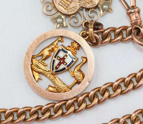 with Mizpah pendant and fob with enamelled Australian Coat of Arms
