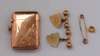 of shield shape and dumb bell terminals, a gold pin and a 9ct gold vesta case