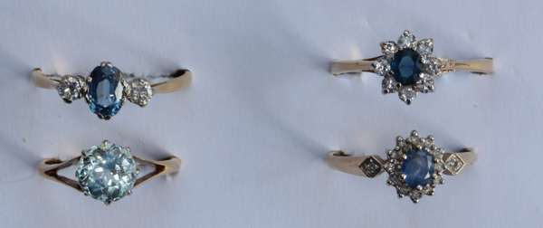 Four assorted gem set rings
