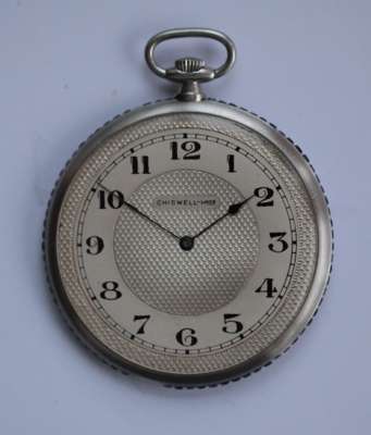 the engine turned dial inscribed CHISWELL - HNOS, with Arabic numerals, with plain case to reverse, the sides channel set with a border of French cut sapphires