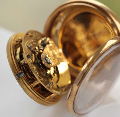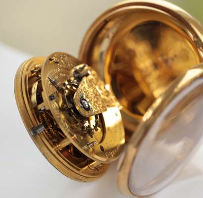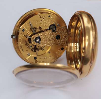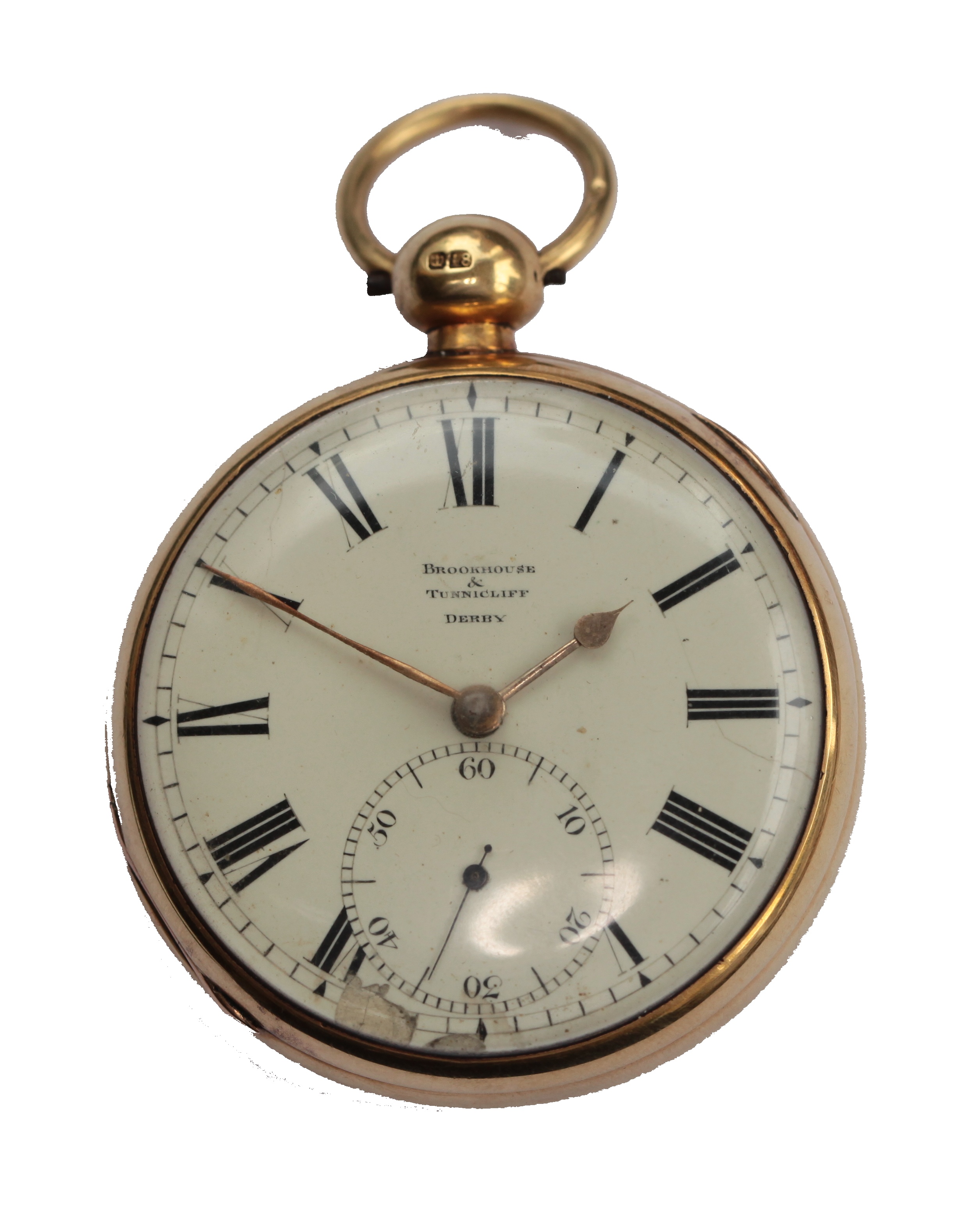 Brookhouse & Tunnicliff of Derby, London 1820, the enamel dial with Roman numerals and subsidiary seconds dial, the rear case with engraved cartouche, the dial and movement signed, the movement with engraved detail and diamond end stone