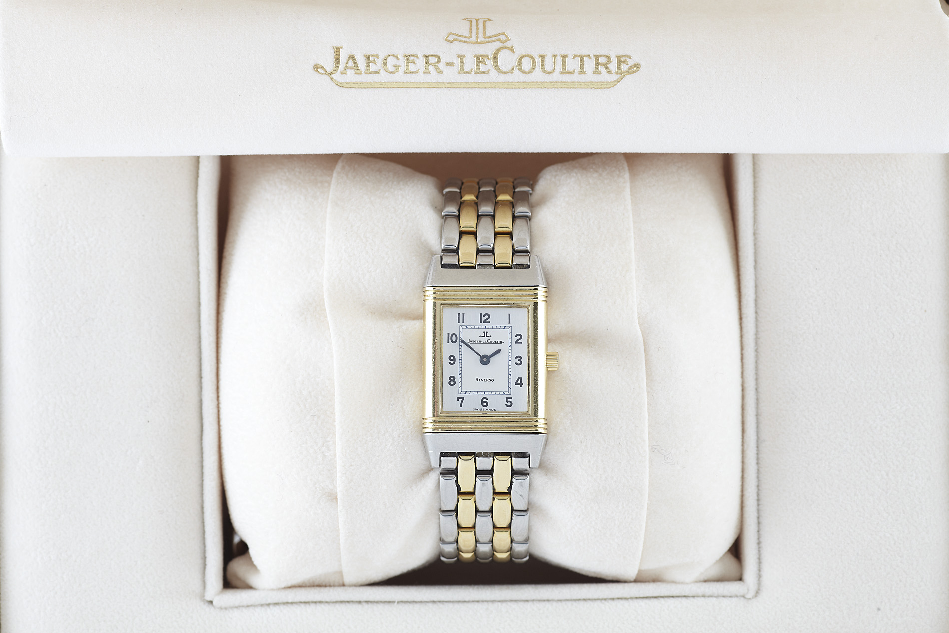JAEGER-LE-COULTRE - a lady's stainless steel and gold Reverso wrist watch