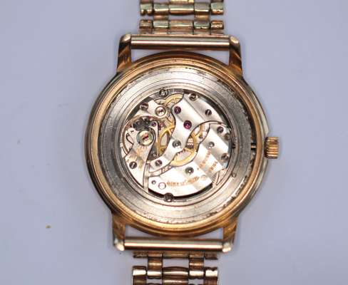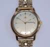 the champagne dial with baton numerals, to a textured 9ct gold brick link bracelet with fold over clasp