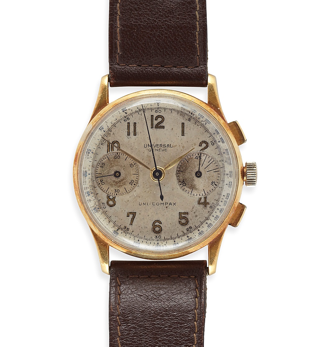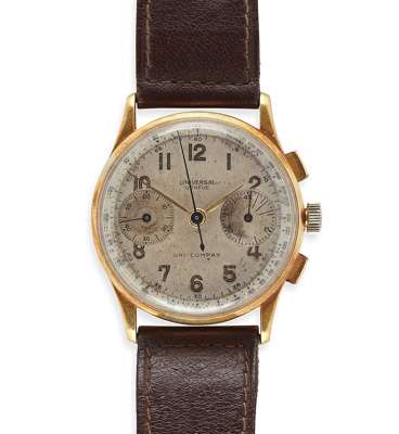 UNIVERSAL GENEVE UNI COMPAX - A gentleman's 18ct gold cased chronograph