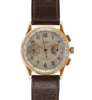 off white dial with tacho outer dial, sweep second hand, gilt hands, Arabic numerals, subsidiary dials for seconds and time elapsed, yellow gold case, leather strap, rear of case numbered 1159508 12445,