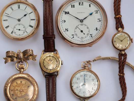 A collection of gold wrist and other watches