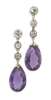 A pair of amethyst and diamond pendant earrings