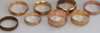 to include one 22ct; three 18ct gold, two with engraved decoration; three 9ct gold examples, one with engraved detail; and one unmarked plain band (8)