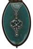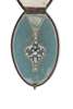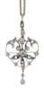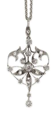the trace link chain with a pendant of diamond set bale with the main drop of scrolling set small diamonds in a stylised setting, contained in a fitted case