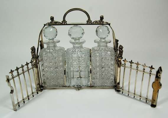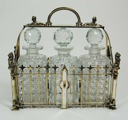 A silver plated three bottle tantalus