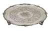 Elkington & Co, of shaped circular outline with reeded and foliate rim, the centre engraved with scrolling foliate borders with floral displays, engraved centrally with armorial, also to reverse 'To Mary Rice Henn from her Mother 1844', raised on four open bracket feet