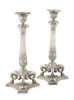 marked 'GOEHRING, 13/I, the reeded columns with floral capitals and sconces, the lower section on triple leg and paw feet on shaped gadrooned base (2)