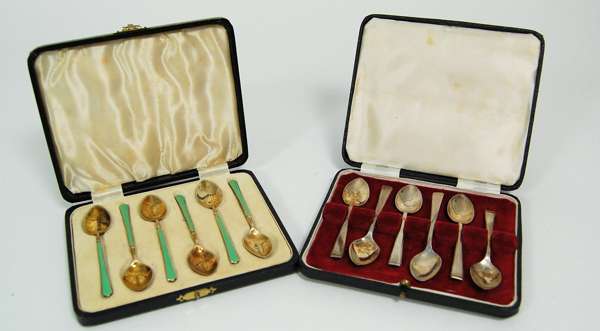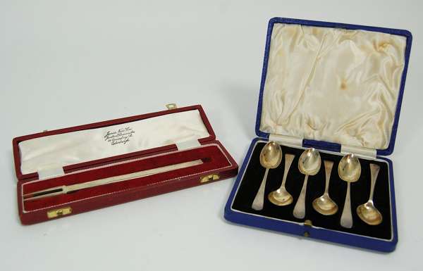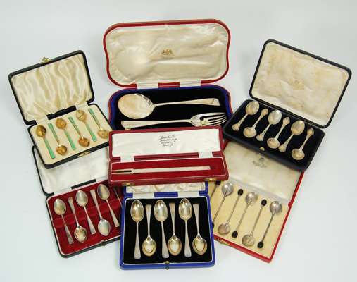 to include cased coffee spoons, teaspoons, salad server and fork etc (7)