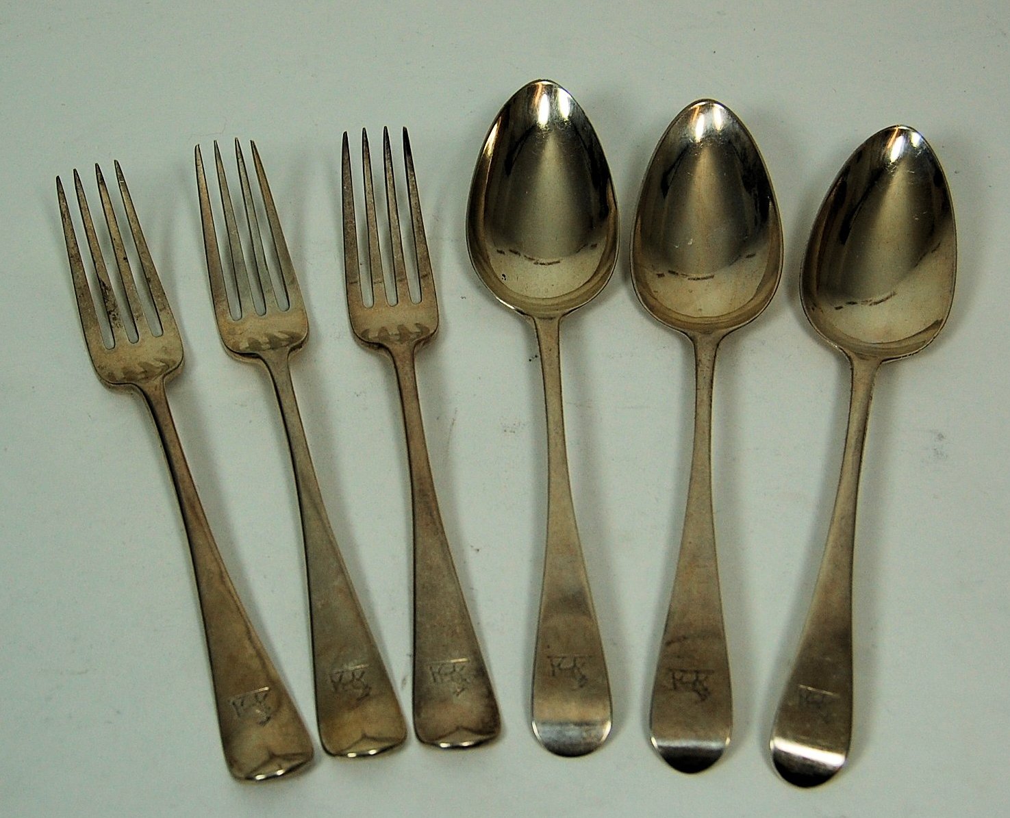 various dates and makers, comprising eleven tablespoons and six tableforks, with engraved crests (17)
