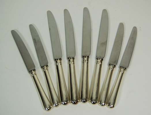 Sheffield 1975, comprising twelve table and twelve side knives, of Hanoverian pattern with plain handles and steel blades (24)