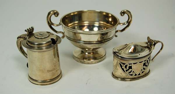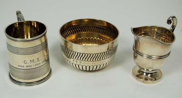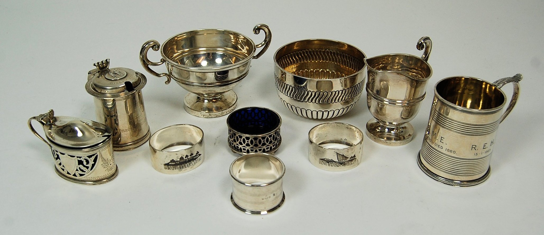 to include, a William IV christening mug, London 1835; a collection of modern cruets and mustard pots and various small cream jugs and sugar bowls (qty)