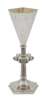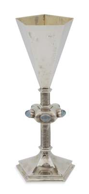 Jocelyn Burton for Aurum, London 1975, limited edition 28/150, the bowl of plain hexagonal form, the textured stem with knopped detail set with blue topaz cabochons, on a swept hexagonal foot, with original fitted box and paperwork