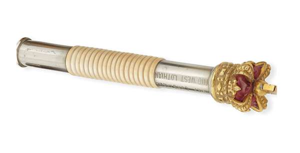 the turned ivory grip in white metals mounts inscribed 'CHIEF CONSTABLE MID-WEST LOTHIAN', surmounted by a gilt metal crown with red velvet interior