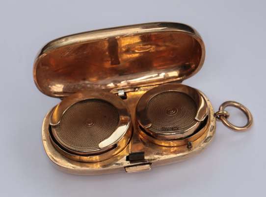 of rounded rectangular form, engraved inscription, interior for full and half sovereign