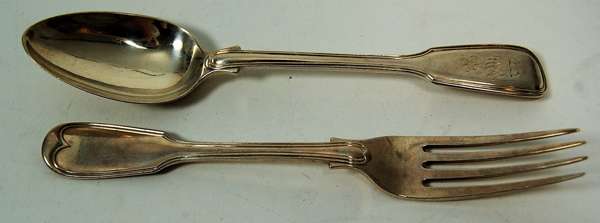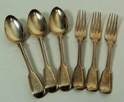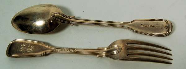 A suite of Fiddle and Thread dessert spoons and forks