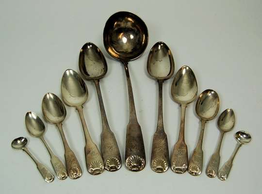 A part suite of Fiddle and Shell flatware
