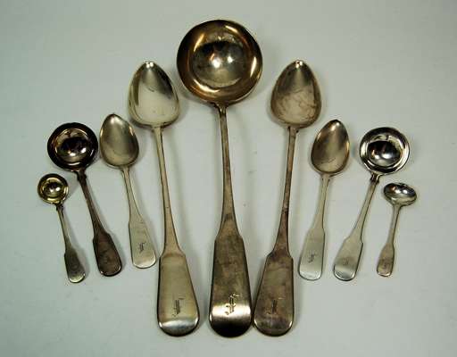 A mixed group of Fiddle pattern flatware