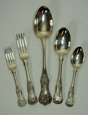 various dates and makers comprising six each of, table forks, tablespoons, dessert forks and dessert spoons, together with two serving spoons
