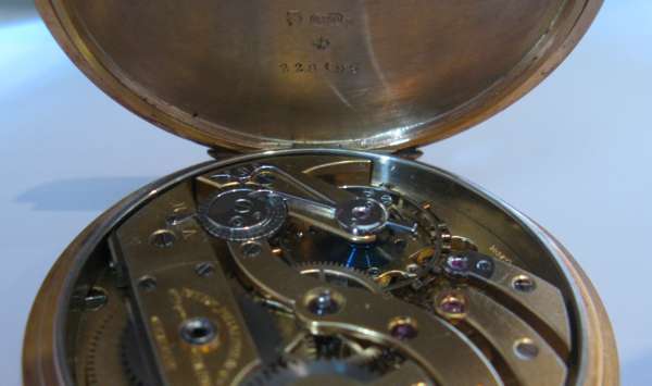 the outer case with engraved monogram, white dial, signed, black Arabic numerals, subsidiary seconds hand, the cuvette inscribed and numbered 116193, as is the open lever movement, bi-metal balance, micro screw adjustment, in original fitted case with original receipt