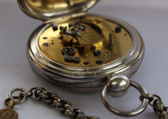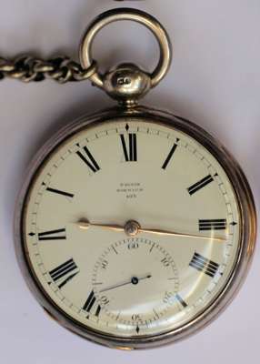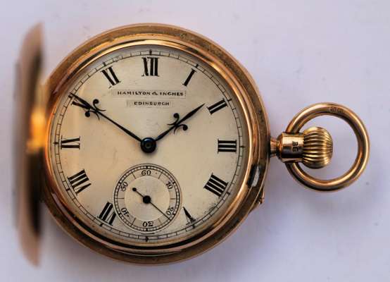 enamel outer dial, silvered dial inscribed Hamilton & Inches Edinburgh, as is the lever movement, a silver cased pocket watch, the white dial inscribed 'Piggin Norwich 423' plain case, enclosed movement with open balance wheel, signed and numbered, a Waltham silver cased pocket watch, a silver cased wrist watch (4)