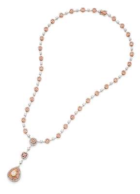 52cm, Estimated diamond weights: pink diamonds 5.57cts, yellow diamonds 1.01cts, colourless diamonds 3.08cts