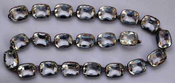 composed of a row of twenty two claw set mixed cut rock crystals, with hook and eye fastenings
