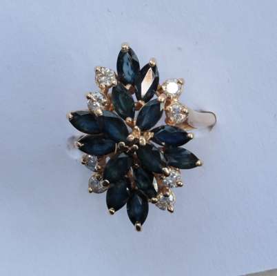 A modern sapphire and diamond ring