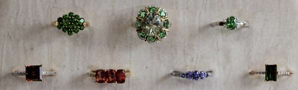 A collection of seven assorted gem set rings