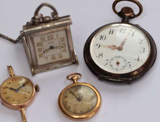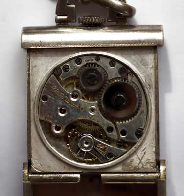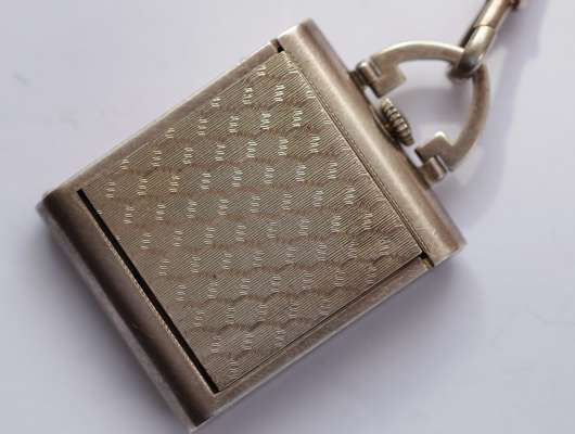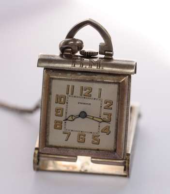 a silver cased travel pocket watch, the square dial inscribed PRISMA, in a folding case with engine turned decoration, the movement signed Welta Watch Company