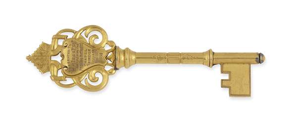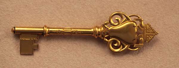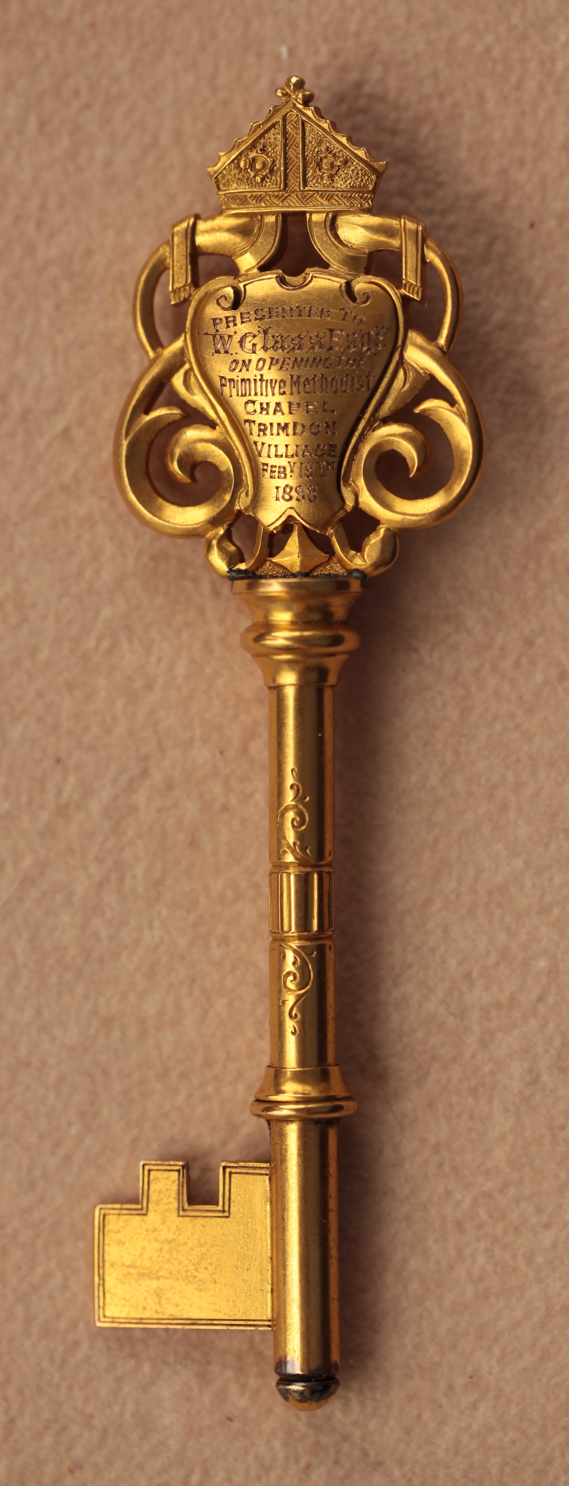 of key form, engraved shield, refering to opening of Methodist Chapel Trimdon, 1898. in fitted case
