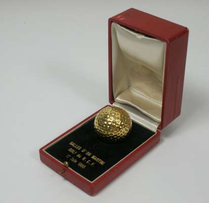 A cased gold golf ball