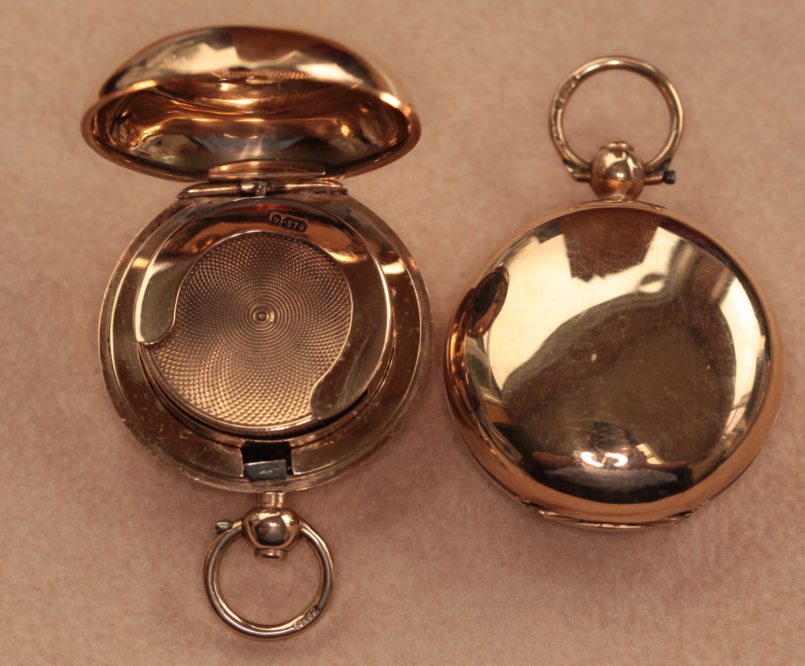 Two plain 9ct gold sovereign cases