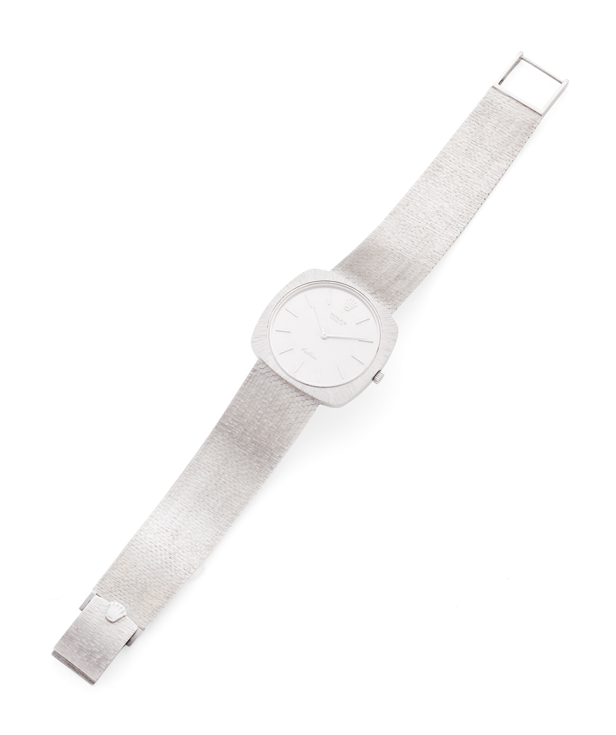 Cellini - the circular silvered dial, inscribed, with baton numerals, Rolex crown at 12, rounded rectangular bezel, integral flexible bracelet, the movement 1600 calibre, 19 rubies, with receipt from Bucherer March 1970