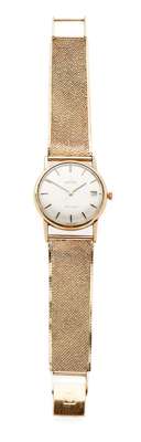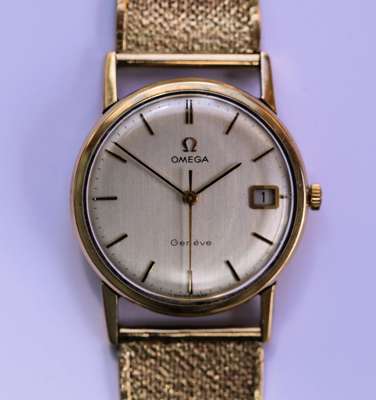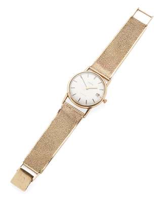 Geneve - champagne dial, baton numerals, sweep second hand, date aperture. integral mesh textured bracelet, movement 613 calibre, quick set date, case numbered 331/25410