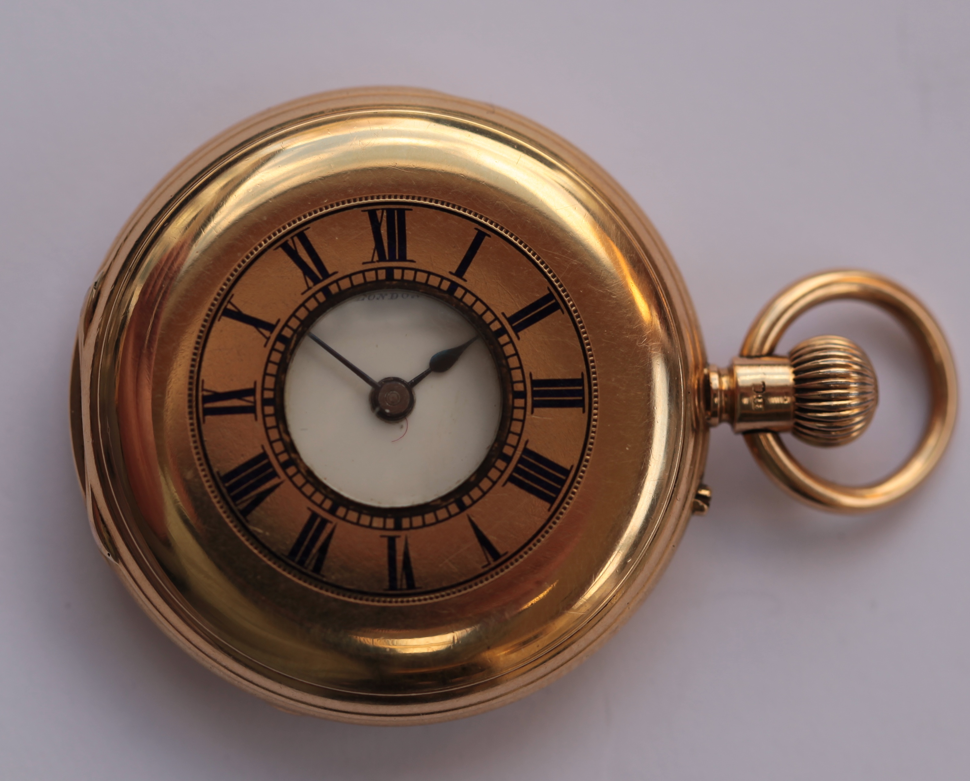 An 18ct gold keyless demi- hunter cased small pocket watch