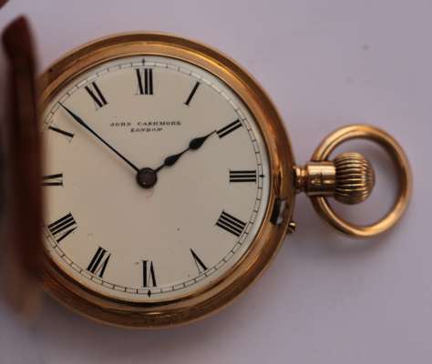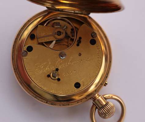 enamel numerals to outer case, the white dial inscribed John Cashmore London, plain case, three quarter plate lever movement inscribed and numbered 6507