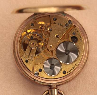 J W BENSON - A 9ct gold cased open faced pocket watch