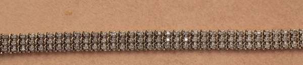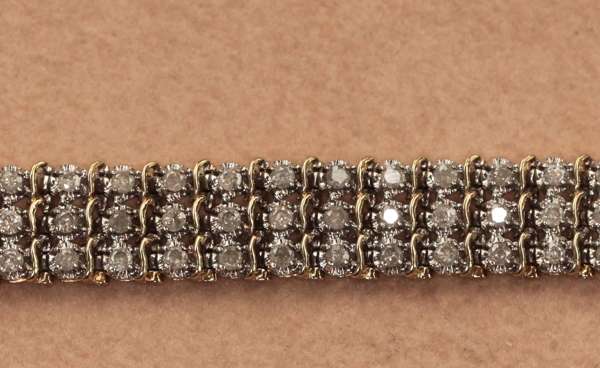 claw set in yellow 9ct gold with circular single cut diamonds, estimated to weigh approximately 3cts