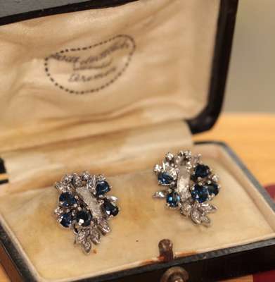 A pair of sapphire and diamond set cluster earrings