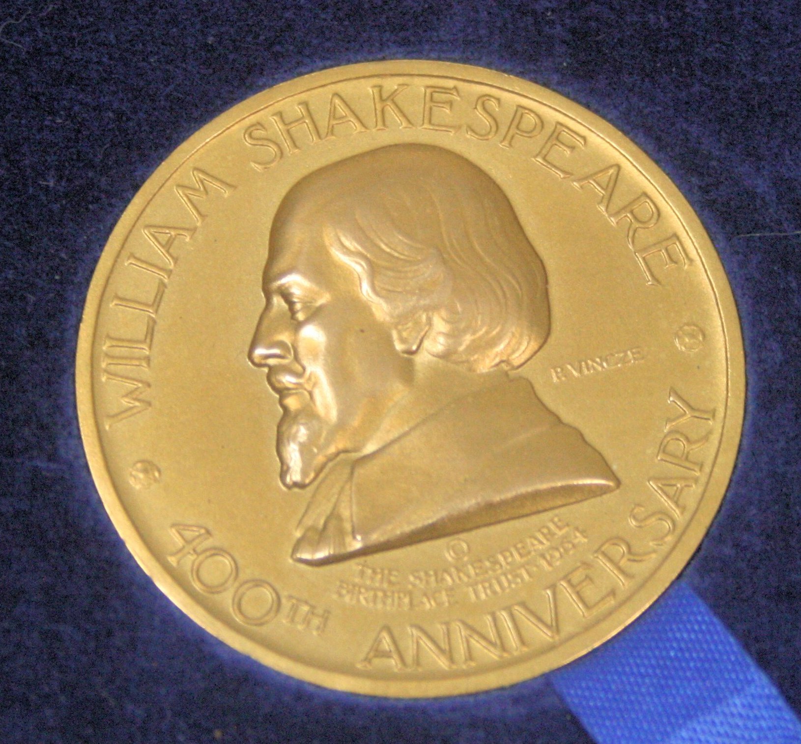 A gold William Shakespeare medallion