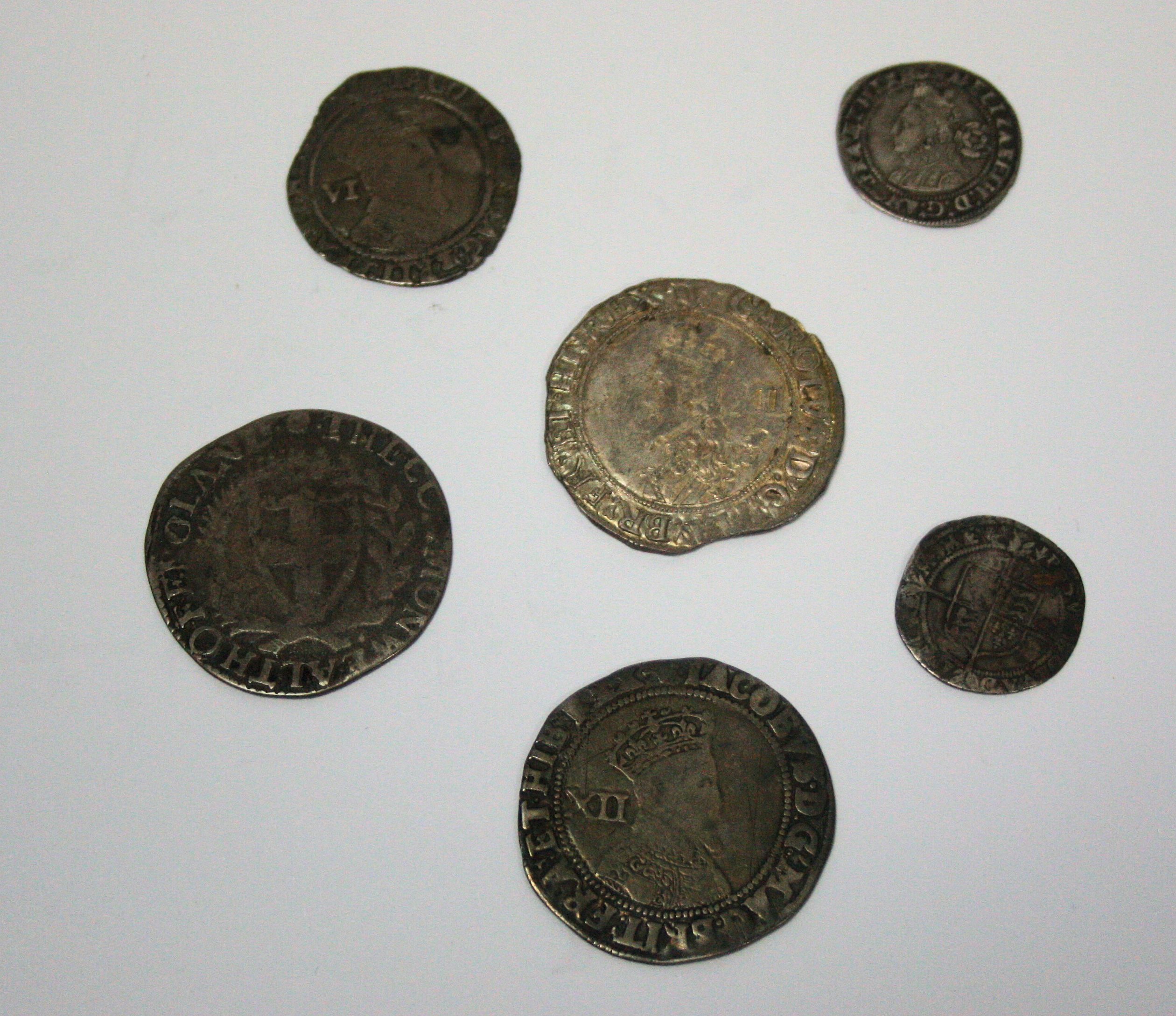 to include a Commonwealth 1637 shilling; Charles I shilling; James I Shilling and sixpence and various small Elizabeth I issues (6)
