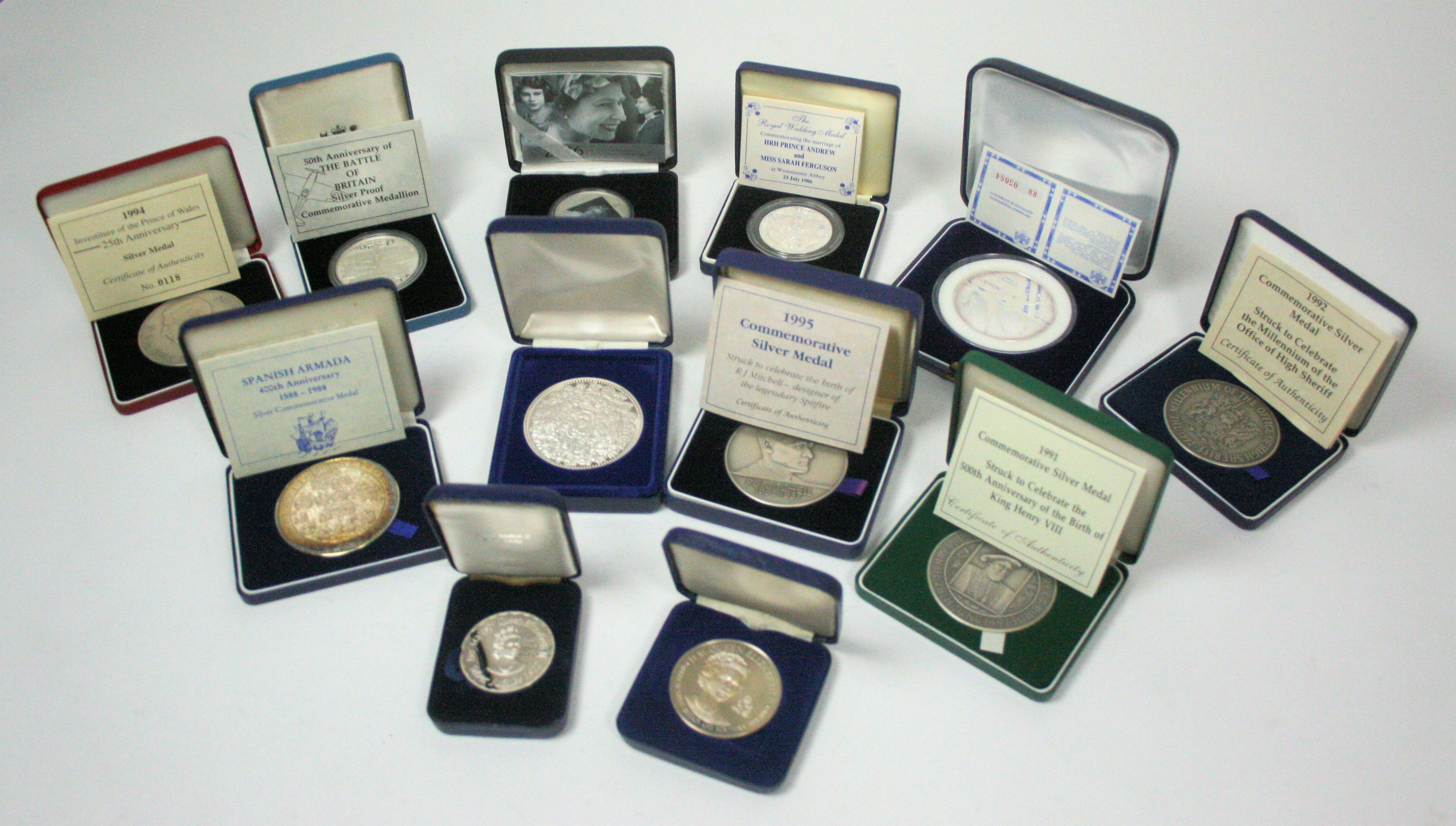 all struck in silver, to include, Spanish Armada, King Henry VIII, Spitfire, Battle of Britain, Queen Elizabeth Jubilee etc (qty)