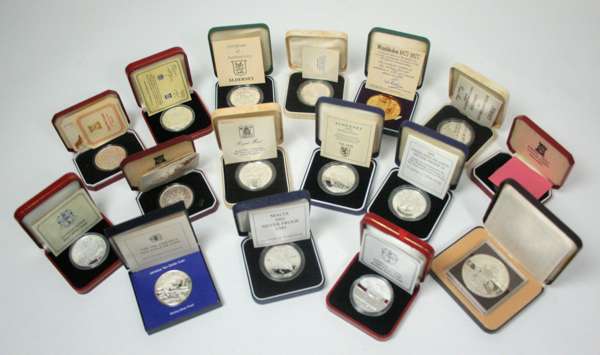 all silver proof issues in cases of issue, various commemorative and countries issues noted (17)