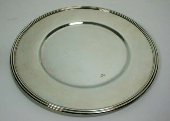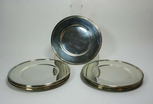 A set of twelve silver plated dishes