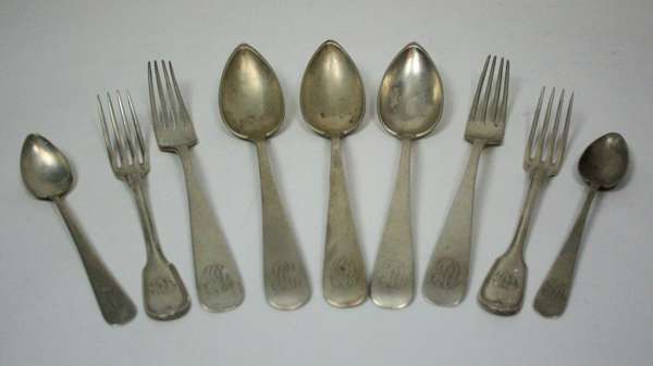 various dates and makers, to include table forks, dessert spoons etc (qty)